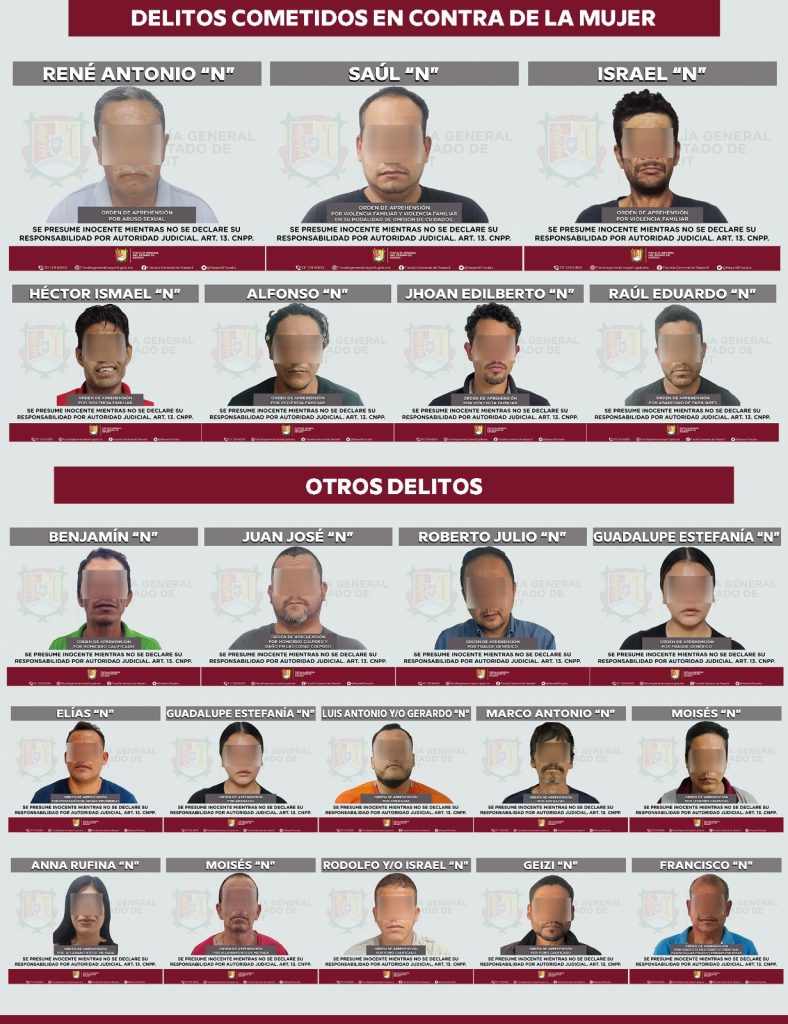 Tepic, Nayarit; 24 de febrero de 2026.– La Fiscalía General del Estado de Nayarit informó que del 20 al 23 de febrero fueron ejecutadas 27 órdenes de aprehensión por diversos delitos en distintos municipios de la entidad.