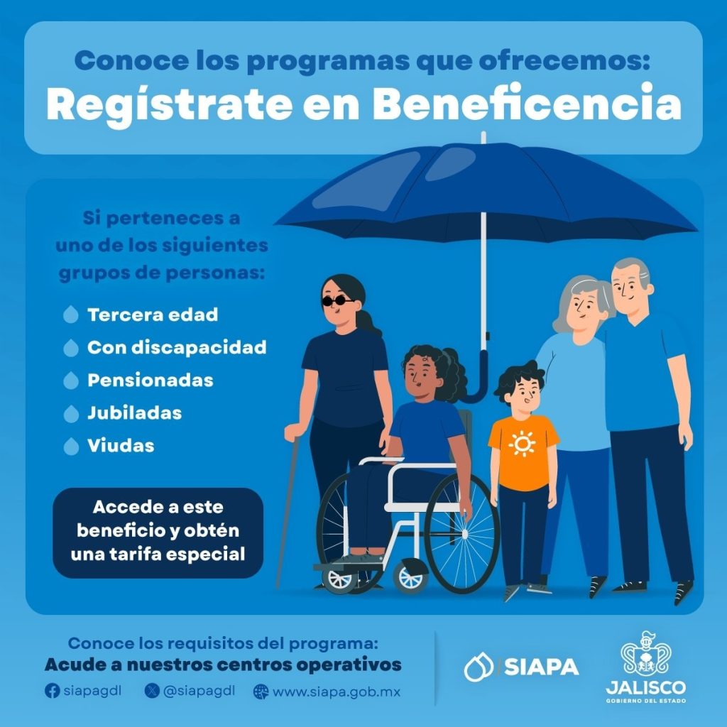 A través de Beneficencia, las personas adultas mayores, con discapacidad, pensionadas, jubiladas y viudas pueden acceder a una tarifa especial en el servicio de agua. Consulta los requisitos y acude a los centros operativos del Siapa Gdl. ✨️