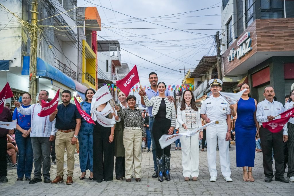Encabezados por el Alcalde Gustavo Ayon y su esposa Estefania Carrillo, Presidenta del DIF Compostela, se dio inicio, durante el rompimiento de las fiestas patronales, a una de las obras de mayor inversión de la presente administración con la construcción de pavimento de concreto hidráulico en la Calle México, una de las vialidades más importantes de la zona centro, que beneficiará directamente a más de 14 mil habitantes.