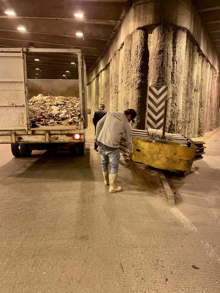 Durante la noche, se llevaron a cabo labores de limpieza en el nodo vial de La Cruz, sumando espacios más limpios y ordenados.