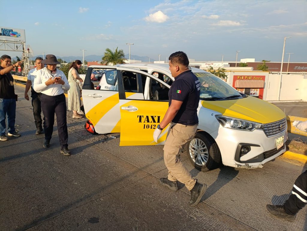 Elementos de la Coordinación Prehospitalaria atienden en este momento accidente automovilístico a la altura del Centro Comercial Lago Real, sobre el Blvd Riviera Nayarit, atendiendo a pasajeros del auto tipo taxi, presentando solo contusiones.