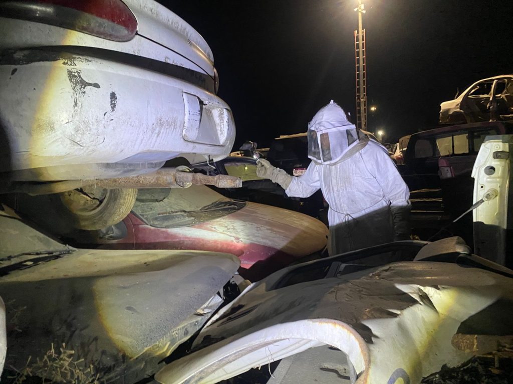 Durante la inspección del lugar también se encontró un masculino dentro de un vehículo, quien presentaba varias picaduras de abeja. Fue rescatado y trasladado para recibir atención médica al Hospital 170 del IMSS.