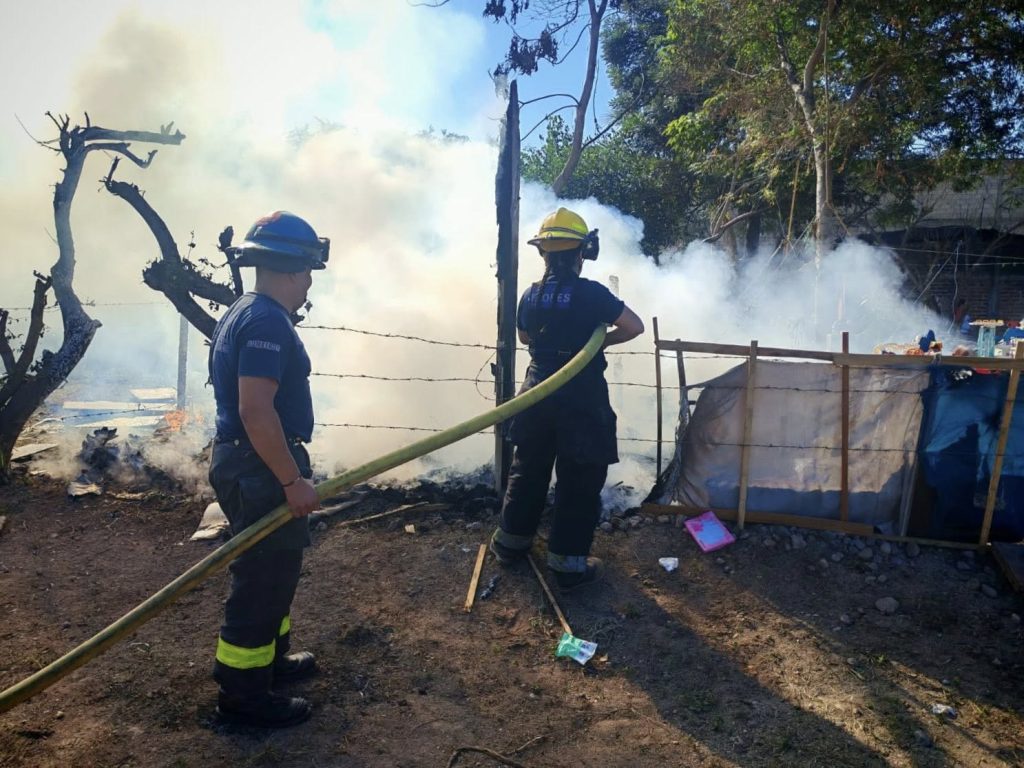 Elementos de Protección Civil y Bomberos atendieron un incendio registrado en un domicilio de la colonia Palmar del Progreso. En el lugar se localizó un domicilio provisional, construido con plásticos y mantas, el cual se encontraba en fase de disminución y abarcaba un área aproximada de 4 x 4 metros.