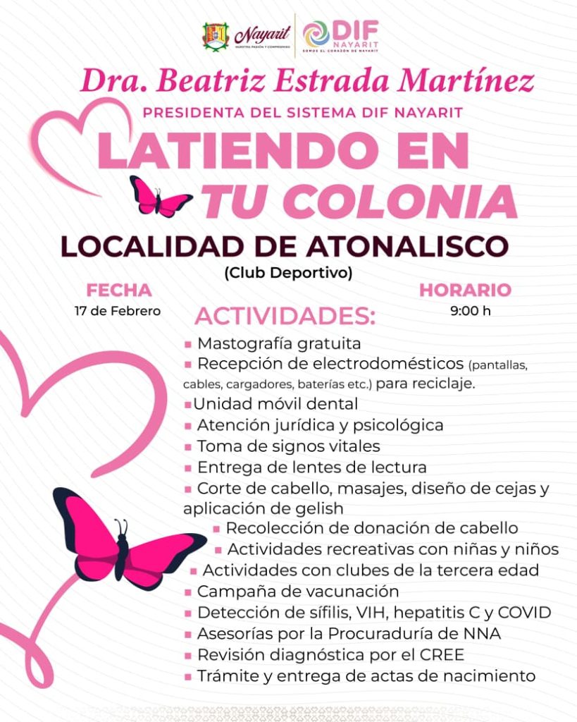 La gira Latiendo en Tu Colonia llegará este martes a la localidad de Atonalisco para acercar servicios y beneficios totalmente gratuitos a las familias.
