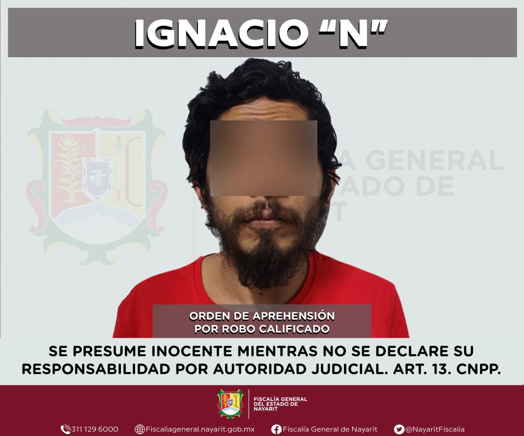 La Fiscalía General de Nayarit a través de la Agencia de Investigación Criminal ejecutó una orden de aprehensión contra Ignacio “N”, por su probable participación en hechos que para la ley configuran el delito de robo calificado, cometido en agravio de la cadena comercial Oxxo, S. A. de C. V., así como de una persona de sexo femenino cuya identidad se reserva para salvaguardar su privacidad e integridad.