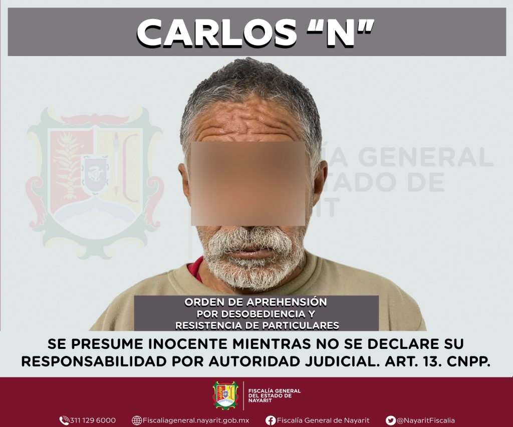 La Fiscalía General de Nayarit a través de la Agencia de Investigación Criminal ejecutó una orden de aprehensión en la ciudad de Tepic contra Carlos “N”, por su probable participación en hechos que para la ley configuran el delito de desobediencia y resistencia de particulares en agravio de la sociedad.