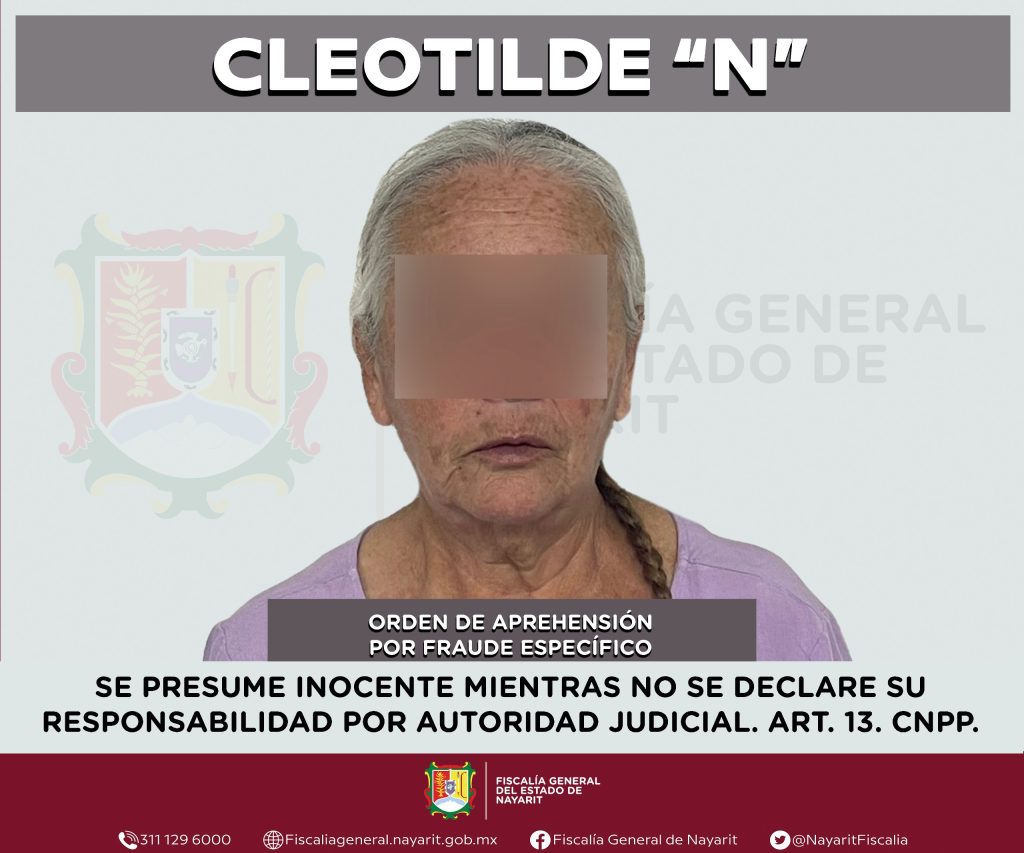 Elementos de la Agencia de Investigación Criminal de Nayarit ejecutaron dos órdenes de aprehensión en la capital nayarita contra Cleotilde “N”, por su probable participación en hechos que para la ley configuran el delito de fraude específico, cometido contra una persona de sexo femenino de la cual se reserva la identidad para salvaguardar su privacidad e integridad.