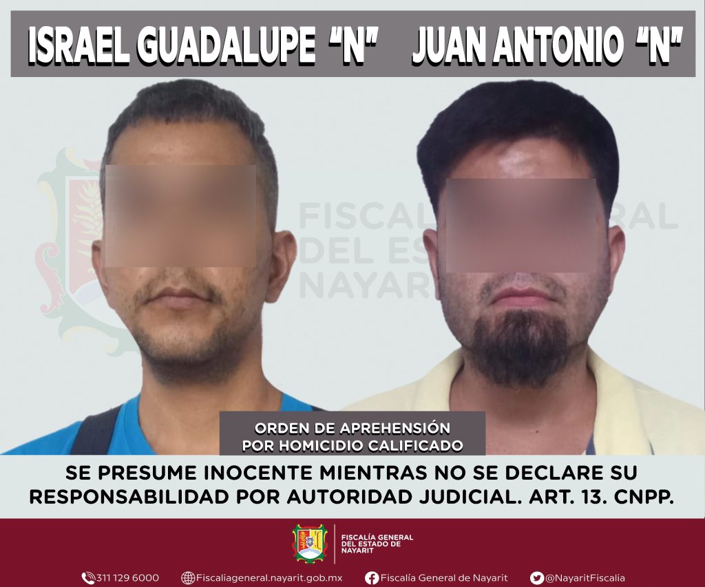 Elementos de la Agencia de Investigación Criminal de Nayarit ejecutaron una orden de aprehensión en la capital nayarita contra Israel Guadalupe “N” y Juan Antonio “N”, por su presuntiva participación en hechos que para la ley configuran el delito de homicidio calificado, cometido en agravio de una persona de sexo masculino de quien se reserva la identidad para salvaguardar su privacidad e integridad.