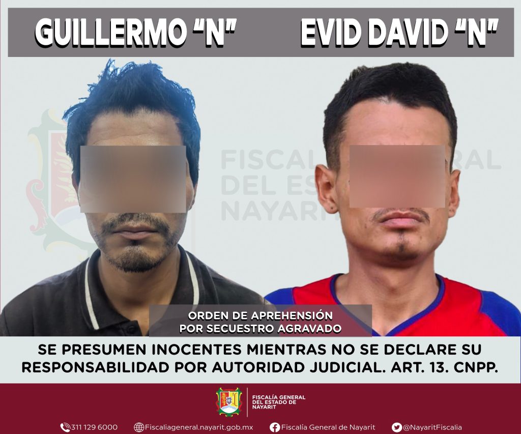 La Fiscalía General del estado a través de la Agencia de Investigación Criminal ejecutó una orden de aprehensión contra Guillermo “N” y Evid David “N”, por su probable participación en hechos que para la ley configuran el delito de secuestro agravado, cometido contra una persona de sexo masculino de quien se reserva la identidad.