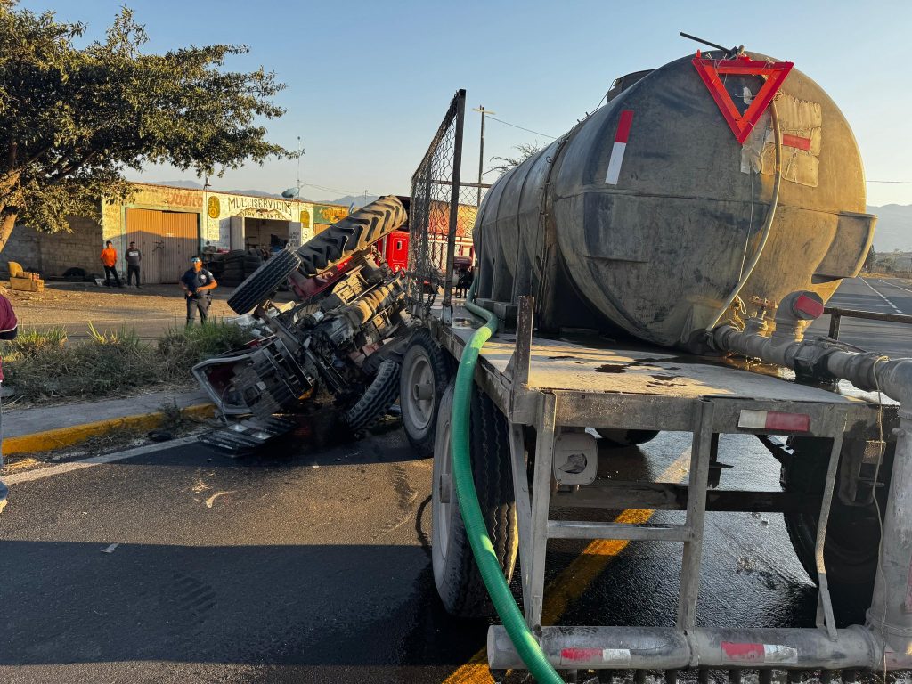 Bomberos Estatales acudieron al lugar del reporte, donde se encontró la volcadura de un tractor de color rojo, perteneciente a la empresa Divemex, mismo que obstruía la vialidad en ambos carriles.