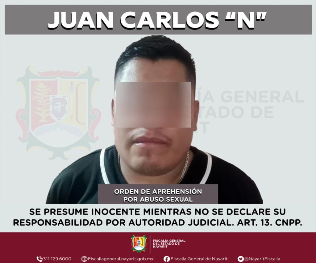 La Fiscalía General de Nayarit a través de la Agencia de Investigación Criminal ejecutó una orden de aprehensión en el municipio de Jala contra Juan Carlos “N”, por su presumible participación en hechos que para la ley configuran el delito de abuso sexual, cometido contra una mujer de quien se reserva la identidad para salvaguardar su privacidad e integridad.