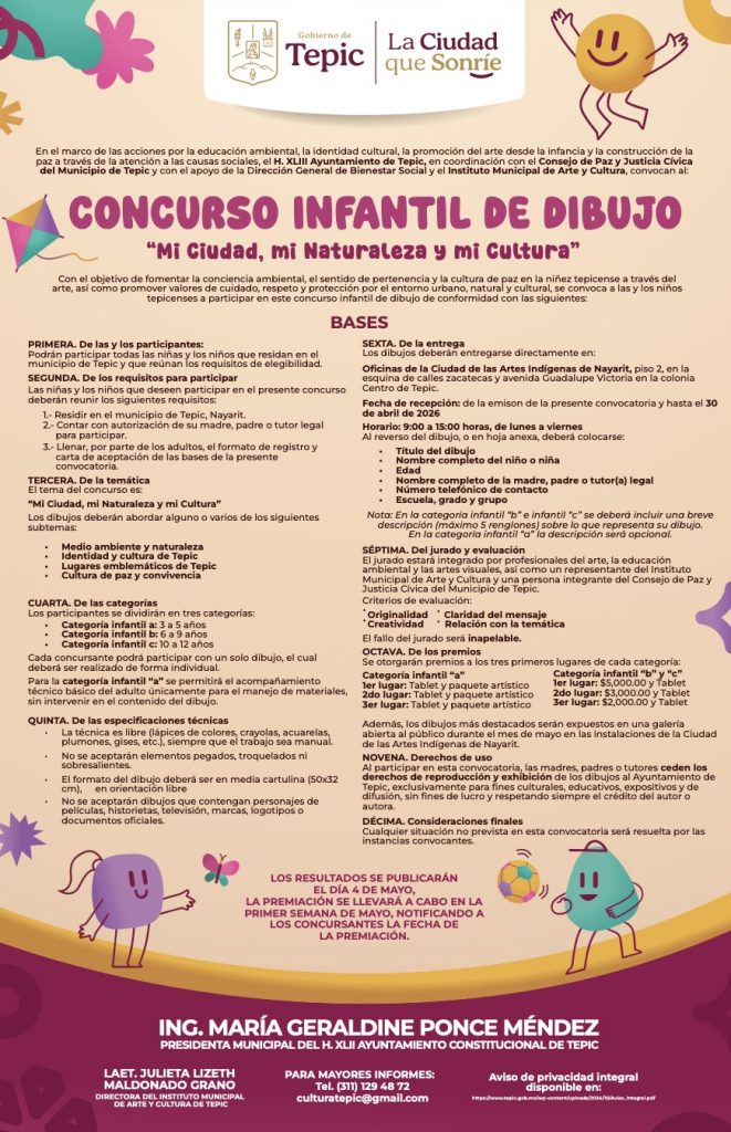 Entrega tu dibujo del 20 al 30 de abril en la Ciudad de las Artes Indígenas. Habrá premios como tablets, apoyos económicos y paquetes artísticos para reconocer su talento. ![]()