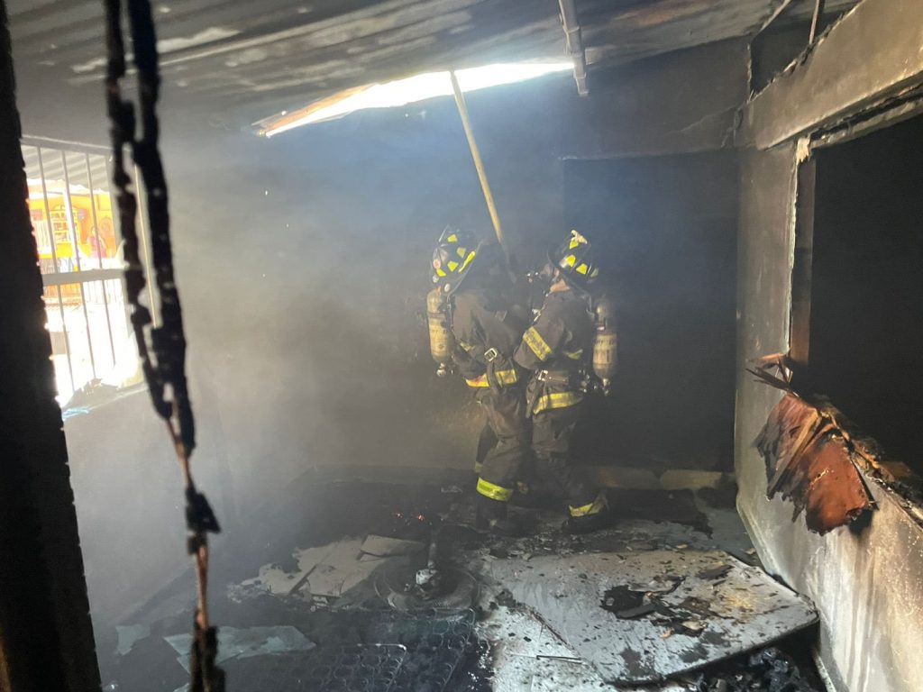 Posteriormente, se llevaron a cabo trabajos de remoción y enfriamiento utilizando manguera de jardín, eliminando por completo riesgos de reignición. Asimismo, se efectuó ventilación mecánica del inmueble.