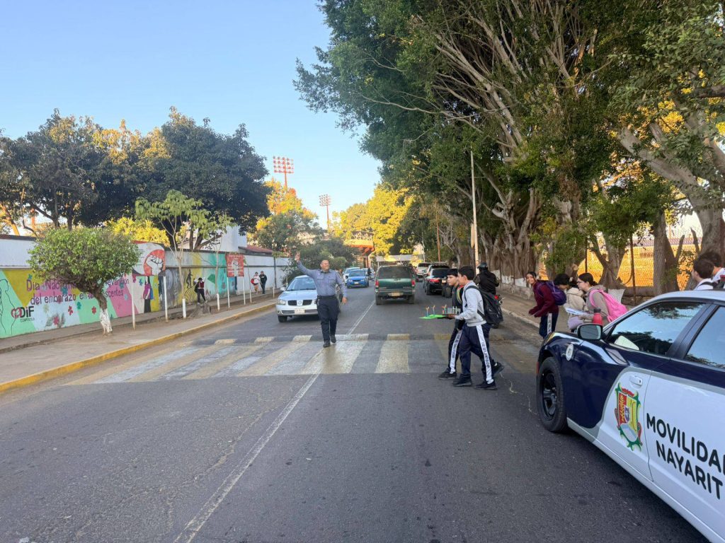 La vigilancia y apoyo vial se mantiene en horarios de entrada y salida de las y los estudiantes, con el objetivo de prevenir incidentes y fortalecer la seguridad como es la indicación del gobernador del estado, Miguel Ángel Navarro Quintero.