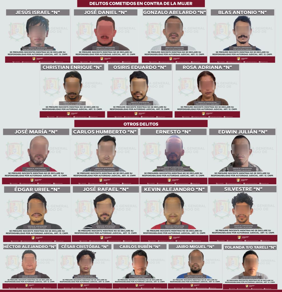 Tepic, Nayarit; 6 de abril de 2026.– La Fiscalía General del Estado de Nayarit informa que, como parte de las acciones permanentes de investigación y persecución penal, del 2 al 5 de abril fueron ejecutadas 29 órdenes de aprehensión por diversos delitos en distintos municipios de la entidad.