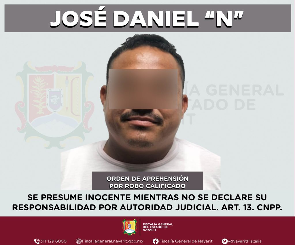 La Fiscalía General de Nayarit a través de la Agencia de Investigación Criminal ejecutó dos órdenes de aprehensión contra José Daniel “N”, por su presumible participación en hechos que para la ley configuran el delito de robo calificado, cometido en agravio de una persona de sexo masculino de quien se reserva la identidad para salvaguardar su privacidad e integridad.