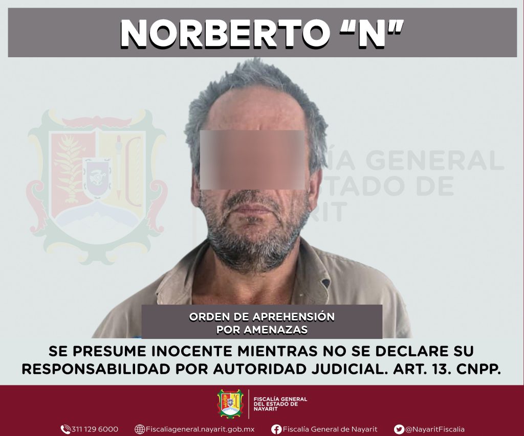 Elementos de la Agencia de Investigación Criminal de Nayarit ejecutaron una orden de aprehensión en el municipio de Compostela contra Norberto “N”, por su presunta participación en hechos que la ley tipifica como delito de amenazas, cometido en agravio de una persona de sexo femenino cuya identidad se reserva para salvaguardar su privacidad e integridad.