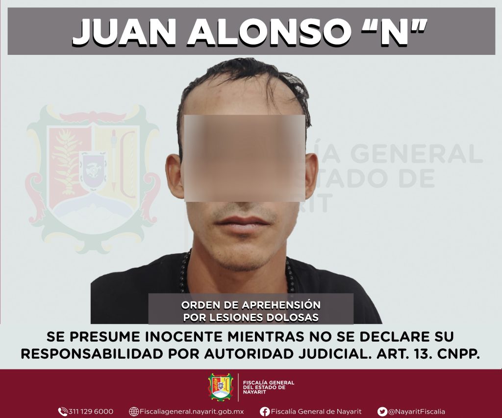 Elementos de la Agencia de Investigación Criminal de Nayarit ejecutaron una orden de aprehensión en la localidad La Peñita de Jaltemba, municipio de Compostela contra Juan Alonso “N”, por su probable participación en hechos que para la ley configuran el delito de lesiones dolosas, cometido en agravio de una persona de sexo masculino cuya identidad se reserva.