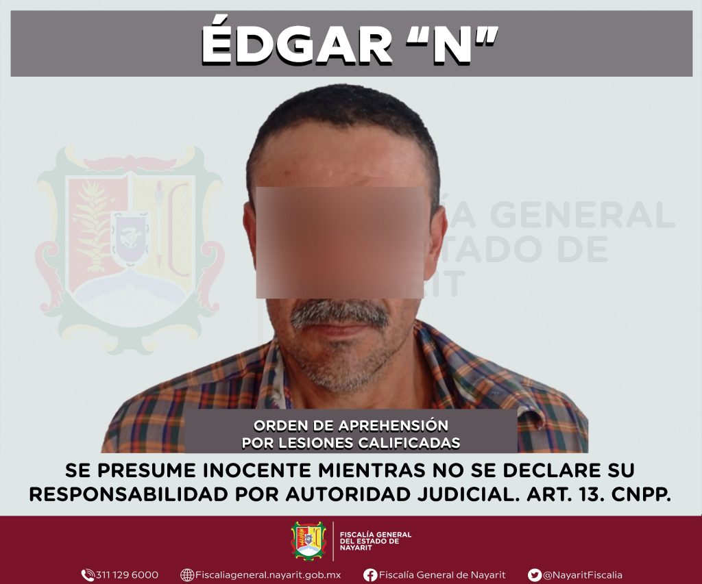 Elementos de la Agencia de Investigación Criminal de Nayarit ejecutaron una orden de aprehensión en el municipio de San Pedro Lagunillas contra Édgar “N”, por su presumible participación en hechos que para la ley configuran el delito de lesiones calificadas, cometido en agravio de una persona de sexo masculino cuya identidad se reserva para salvaguardar su privacidad e integridad.