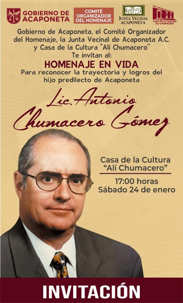 Te invitan al Homenaje en Vida para reconocer la trayectoria y logros del hijo predilecto de Acaponeta: