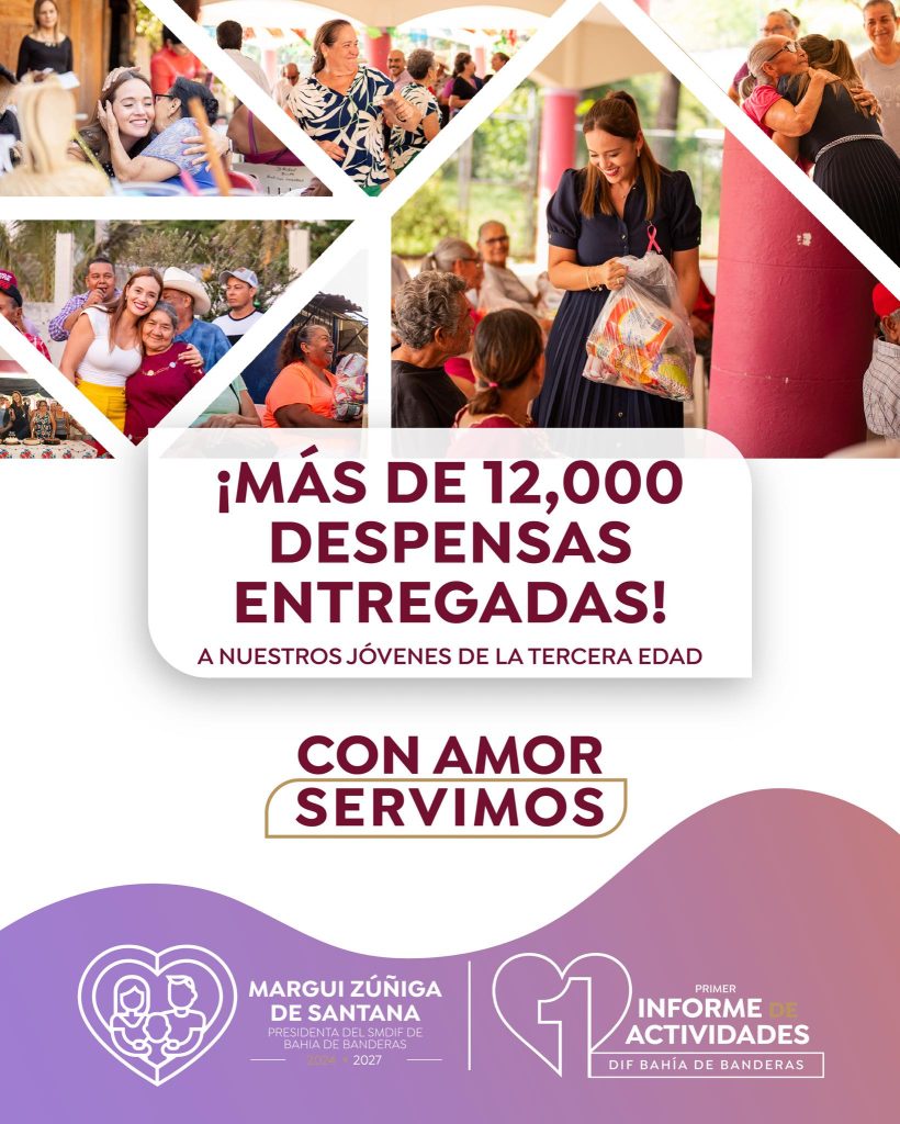 En el marco del Primer Informe de Actividades de nuestra presidenta, la Lic. Margui Zuñiga de Santana, compartimos uno de los logros más significativos de este año: la entrega de más de 12,000 despensas destinadas a nuestros jóvenes de la tercera edad en Bahía de Banderas. ![]()