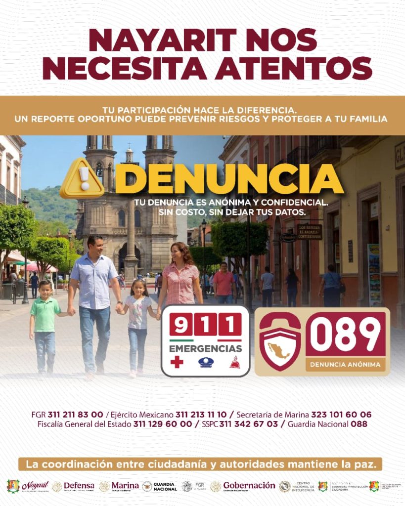 EN NAYARIT, LA SEGURIDAD ES TAREA DE TODAS Y TODOS: ¡DENUNCIA AL 089 O 911!
