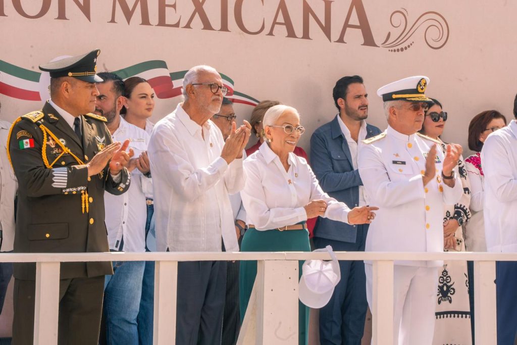 El gobernador del estado de Nayarit, Miguel Ángel Navarro Quintero, acompañado por su esposa, la presidenta del Sistema DIF Nayarit, doctora Beatriz Estrada Martínez, presenció el desfile conmemorativo por el CXV Aniversario de la Revolución Mexicana, realizado frente a Casa de Gobierno.