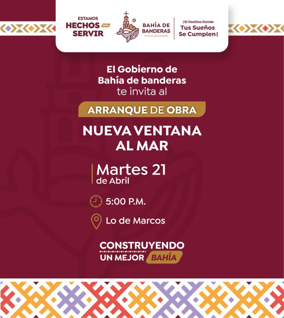 El Gobierno Municipal de Bahía de Banderas llevará a cabo este próximo 21 de abril, a las 17:00 horas, el arranque de la obra “Ventana al Mar” en la localidad de Lo de Marcos.