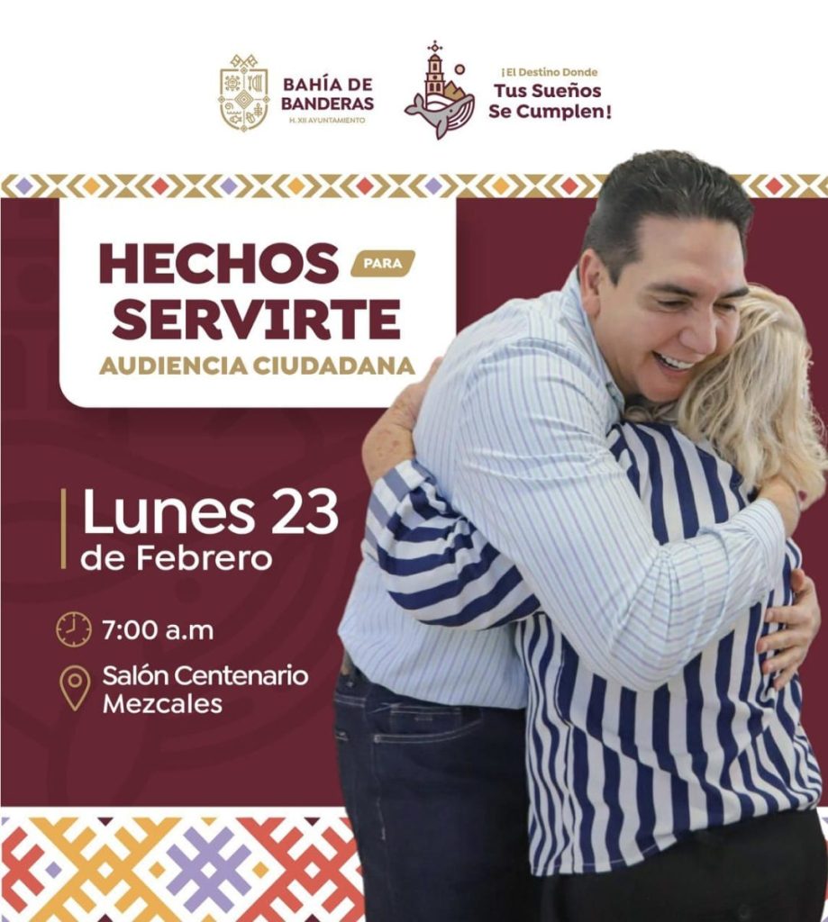El presidente municipal Héctor Santana invita a la población a participar en la próxima audiencia ciudadana, que se llevará a cabo el próximo lunes 23 de febrero, a las 7:00 de la mañana, en el Salón Centenario de Mezcales.