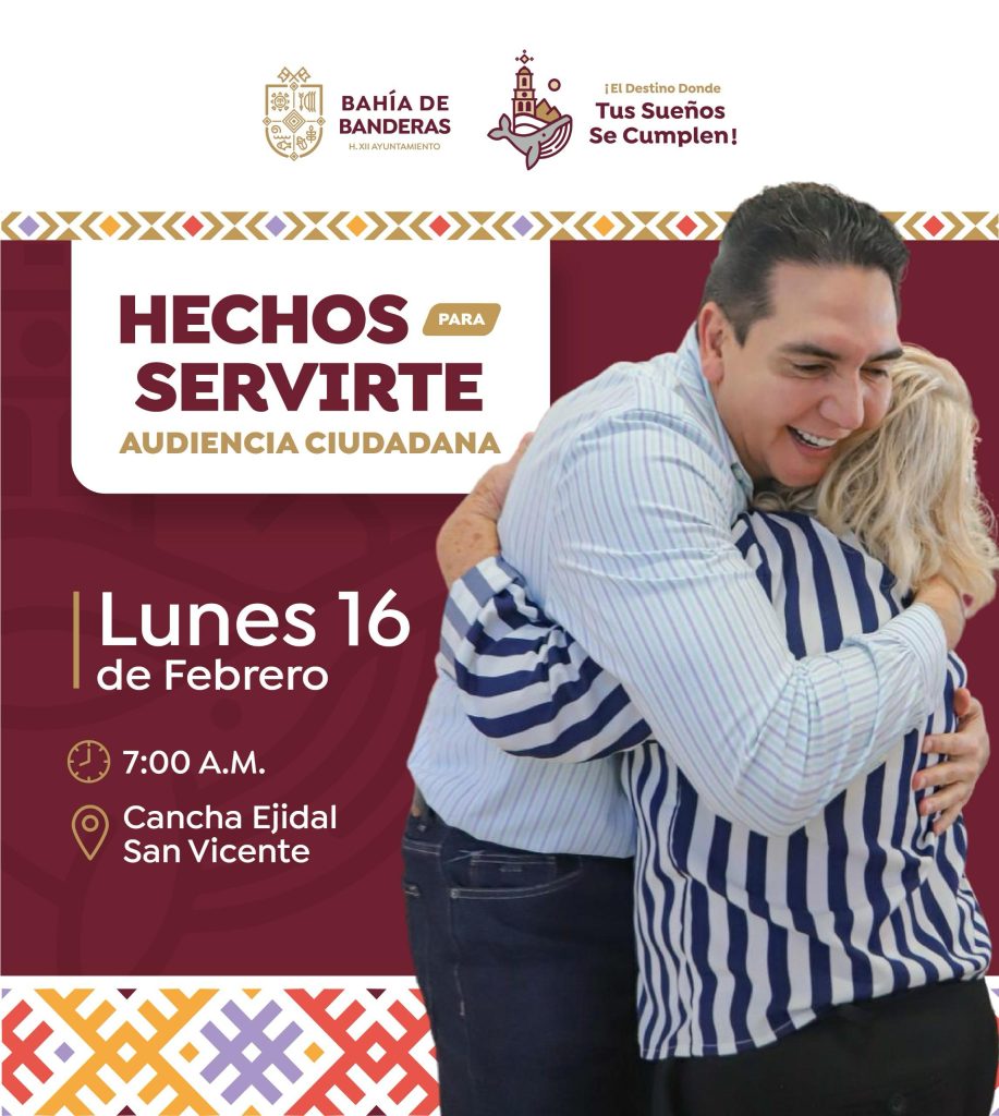 El presidente municipal de Bahía de Banderas, Héctor Santana, encabezará este lunes 16 de febrero la Audiencia Ciudadana, un espacio de atención directa que reafirma su cercanía con la población.