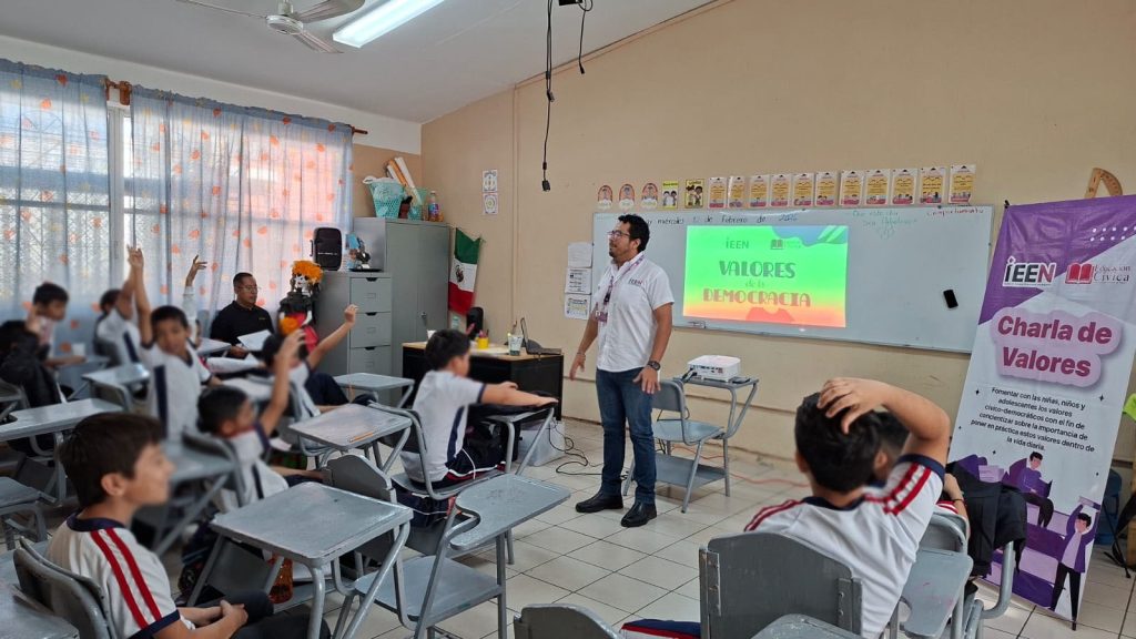 El Instituto Estatal Electoral de Nayarit (IEEN) continúa impulsando actividades orientadas a la formación cívica y la promoción de los valores democráticos entre niñas, niños y jóvenes del estado, a través de diversas acciones realizadas en instituciones educativas como son: “Charla de Valores”, “Lunes Cívico”, Feria Escolar Multidisciplinaria y Diálogos Juveniles.
