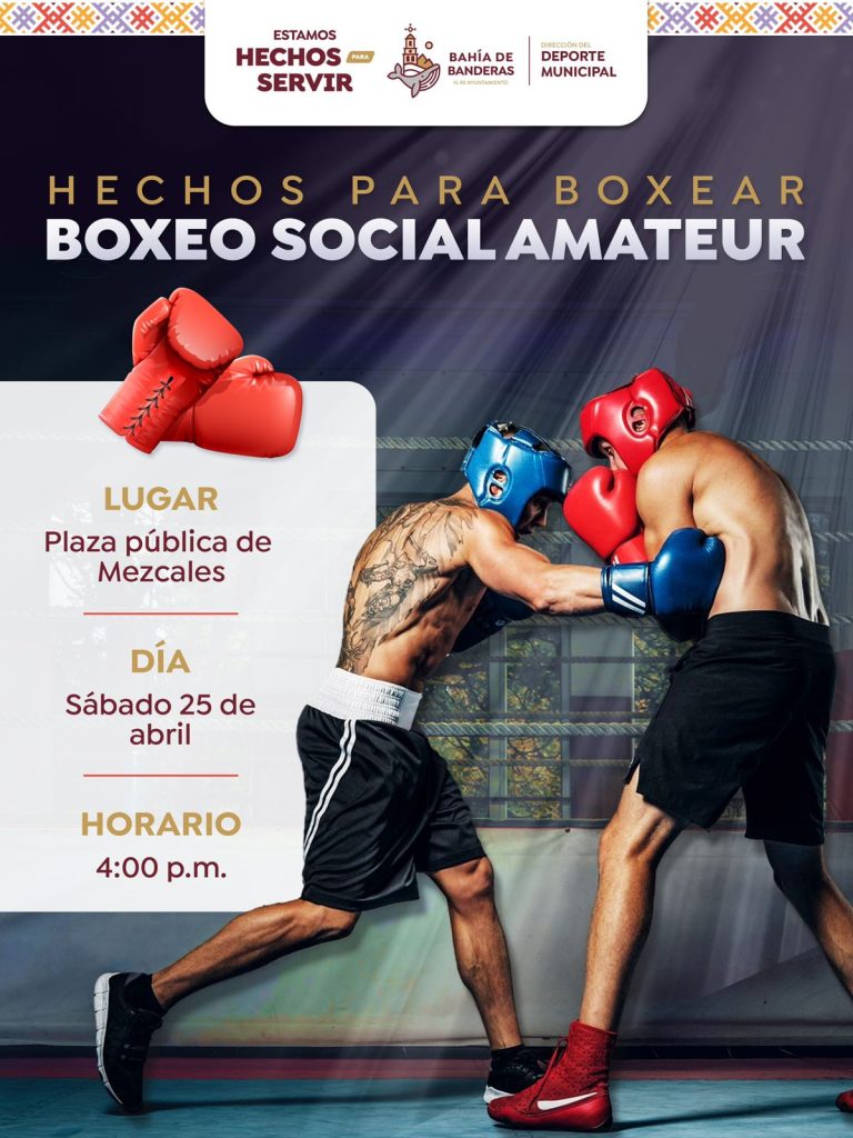 El Gobierno Municipal de Bahía de Banderas, a través de la Dirección del Deporte Municipal, llevará a cabo el evento “Hechos para Boxear, Boxeo Social Amateur” este próximo sábado 25 de abril a las 4:00 p.m, en la plaza pública de Mezcales.