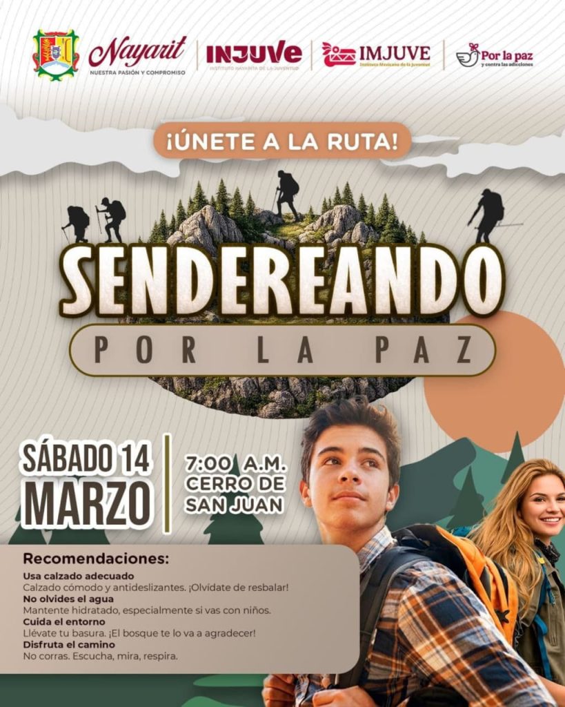 El Gobierno del Estado de Nayarit, a través del Instituto Nayarita de la Juventud (INJUVE), te invita a ser parte de “Sendereando por la Paz”, una ruta que se recorre por una cultura de paz, para conectar con la naturaleza y fomentar la sana convivencia. 🌲