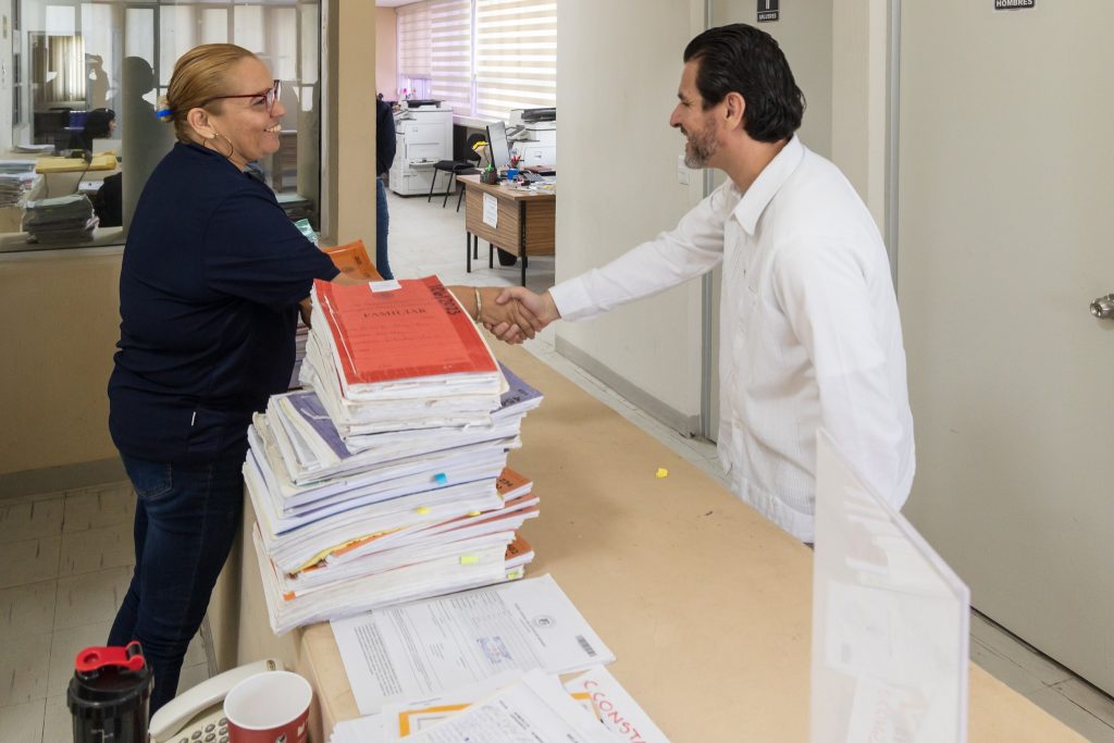 Durante el recorrido, exhortó a las y los trabajadores judiciales a continuar desempeñando su labor con profesionalismo y vocación de servicio, destacando que son el primer contacto con las y los justiciables.