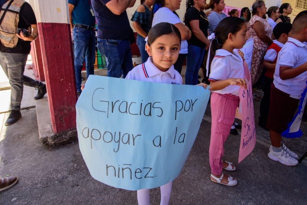 Durante la visita, anunció la construcción de una cancha sin hundimientos ni resquebrajamientos que puedan causar lesiones al alumnado, así como un domo que protegerá a niñas y niños durante sus actividades, permitiendo realizar honores a la bandera, bailables y demás eventos sin riesgo de tropiezos o caídas.