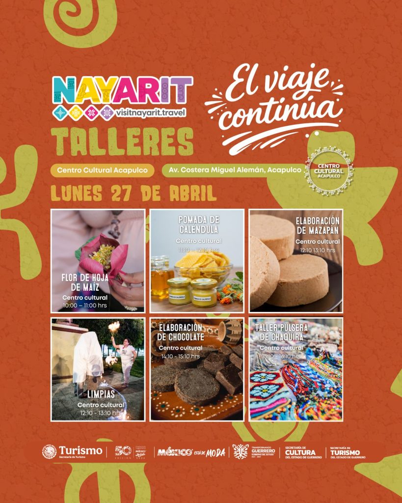 En el marco del 50° Tianguis Turístico de México, el Gobierno de Guerrero, a través de su Secretaría de Cultura, en colaboración con la Secretaría de Turismo del Estado de Nayarit, te invitan a vivir una experiencia única a través de talleres artesanales impartidos por talentosas y talentosos nayaritas.