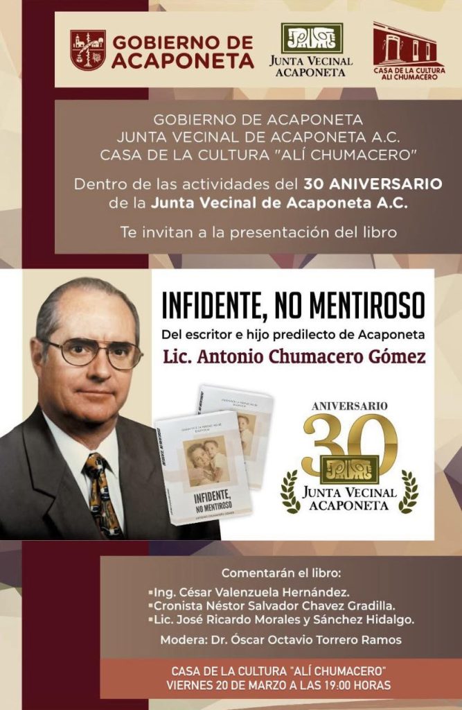 El Gobierno De Acaponeta, a través de Casa de la Cultura Alí Chumacero, se honra en invitar a la presentación del libro: