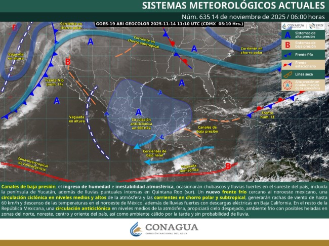 🚨Pronóstico de lluvias para hoy 14 de noviembre de 2025: