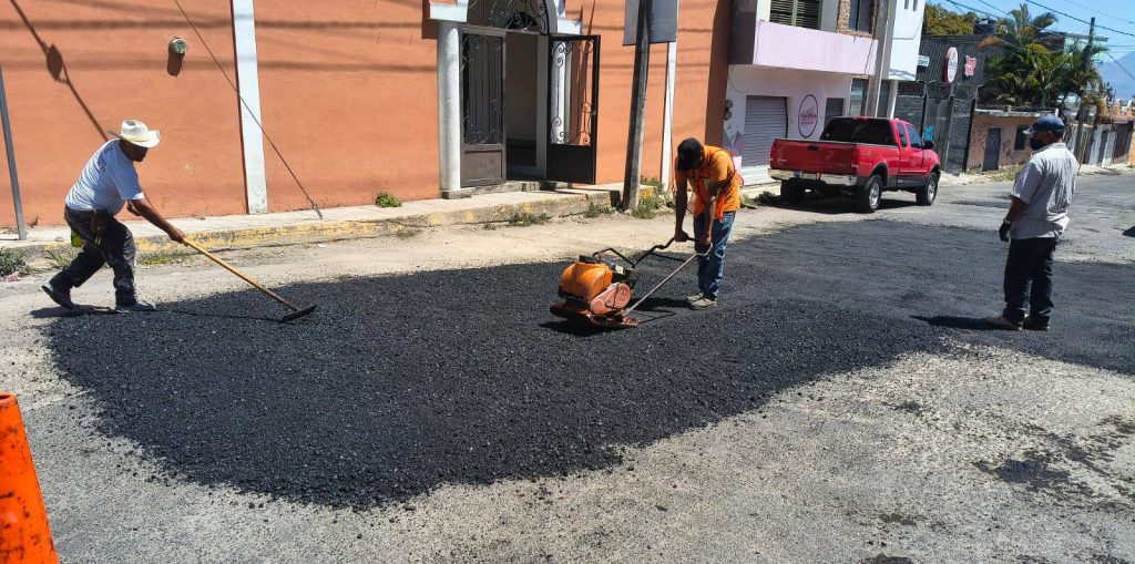 El equipo de Obras públicas del Gobierno de Xalisco realiza trabajos de bacheo en los siguientes lugares: