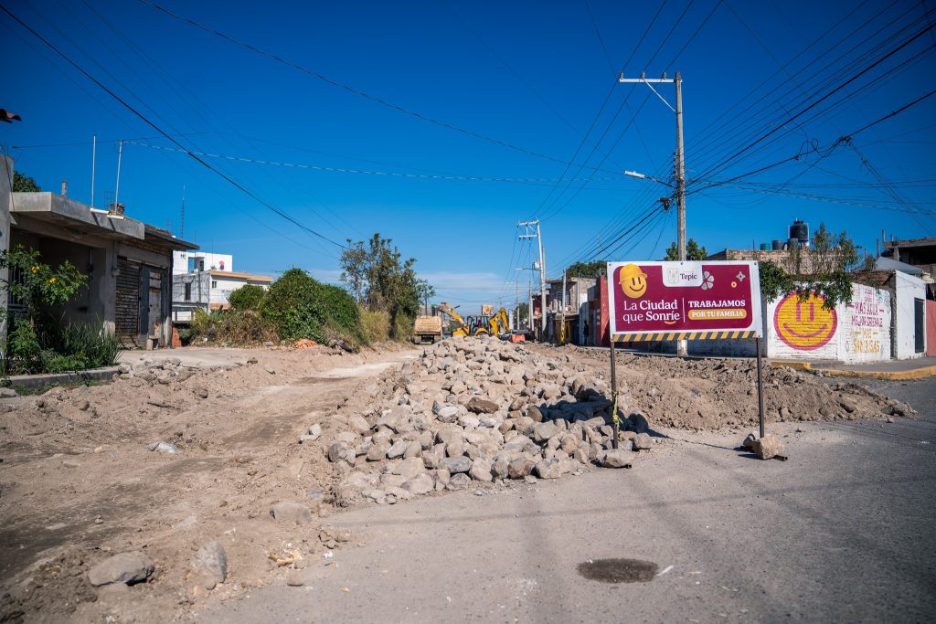 Como parte de las acciones para el mejoramiento de vialidades, el Gobierno de Tepic realiza la rehabilitación de la Av. Palomas, entre Francisco Villa y América, en la colonia Nuevas Palomas, mediante empedrado lechereado.