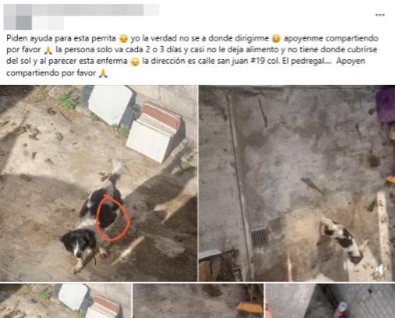 📲Los hechos se derivaron de una denuncia difundida en redes sociales, donde usuarios informaron que en la calle San Juan se encontraba una perrita en aparente estado de abandono y con signos de enfermedad.