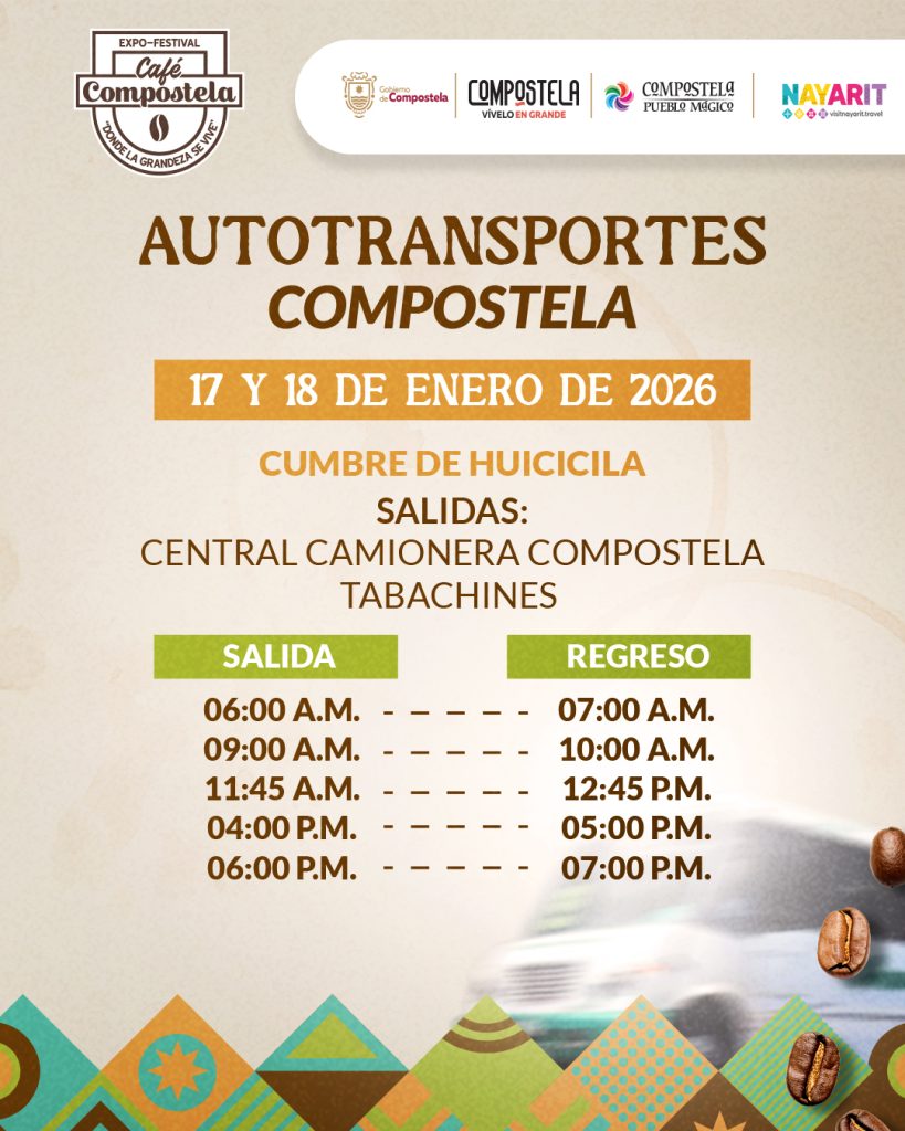 Conoce los horarios exclusivos de los servicios de transporte que estarán habilitados este fin de semana hacia Cumbres de Huicicila. ¡Vivamos juntos la GRANDEZA del café Compostelense!