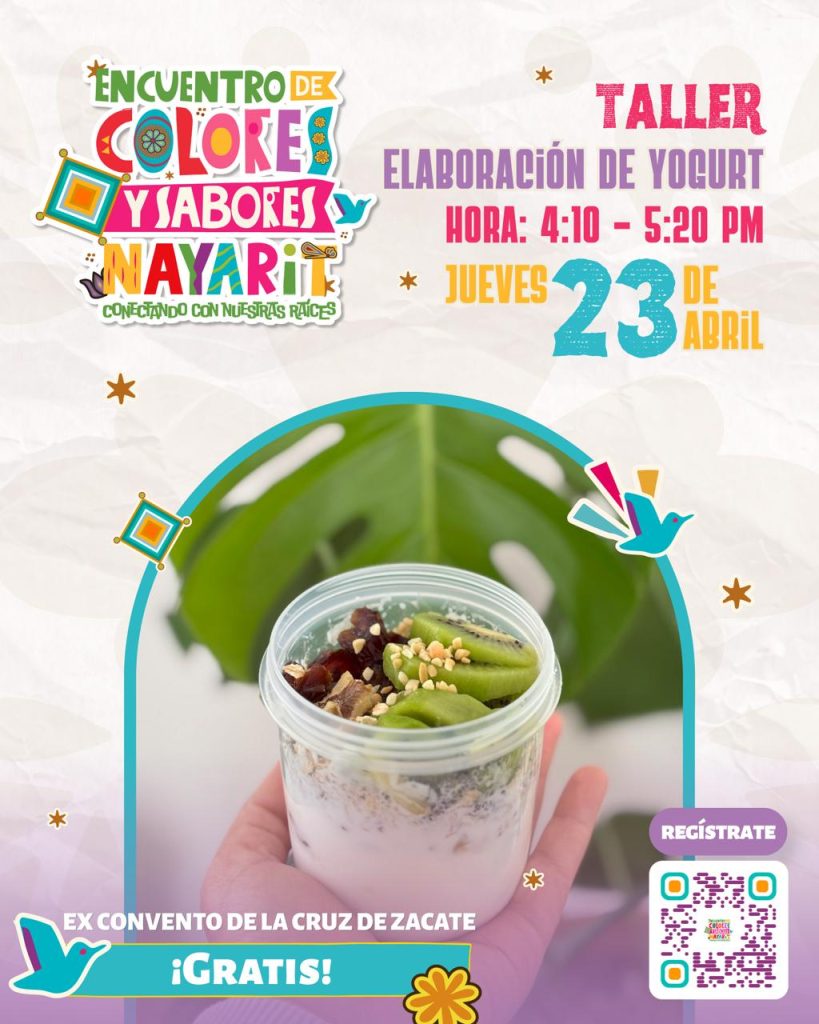 La Secretaría de Turismo del Estado de Nayarit te invita, dentro del marco del Encuentro de Colores y Sabores de Nayarit, a disfrutar de una serie de talleres llenos de creatividad, identidad y sabor este jueves 23 de abril de 2026 en la Explanada del Exconvento de la Cruz de Zacate.